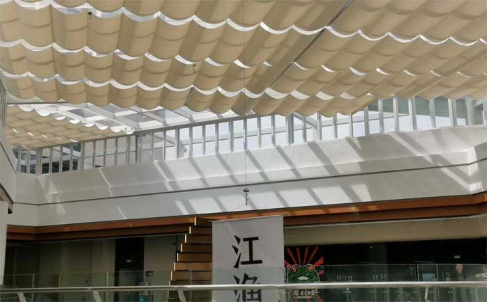 佛山順德大良濤匯廣場采光頂電動遮陽棚 天棚簾實拍 工廠占地3000㎡,集設計、生產、銷售,安裝等于一體的窗簾公司